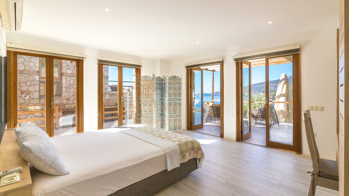 Seriously spacious sun terraces drink in uninterrupted views of the Med at this sleek stone-built property on the edge of Kalkan’s charming old town.
