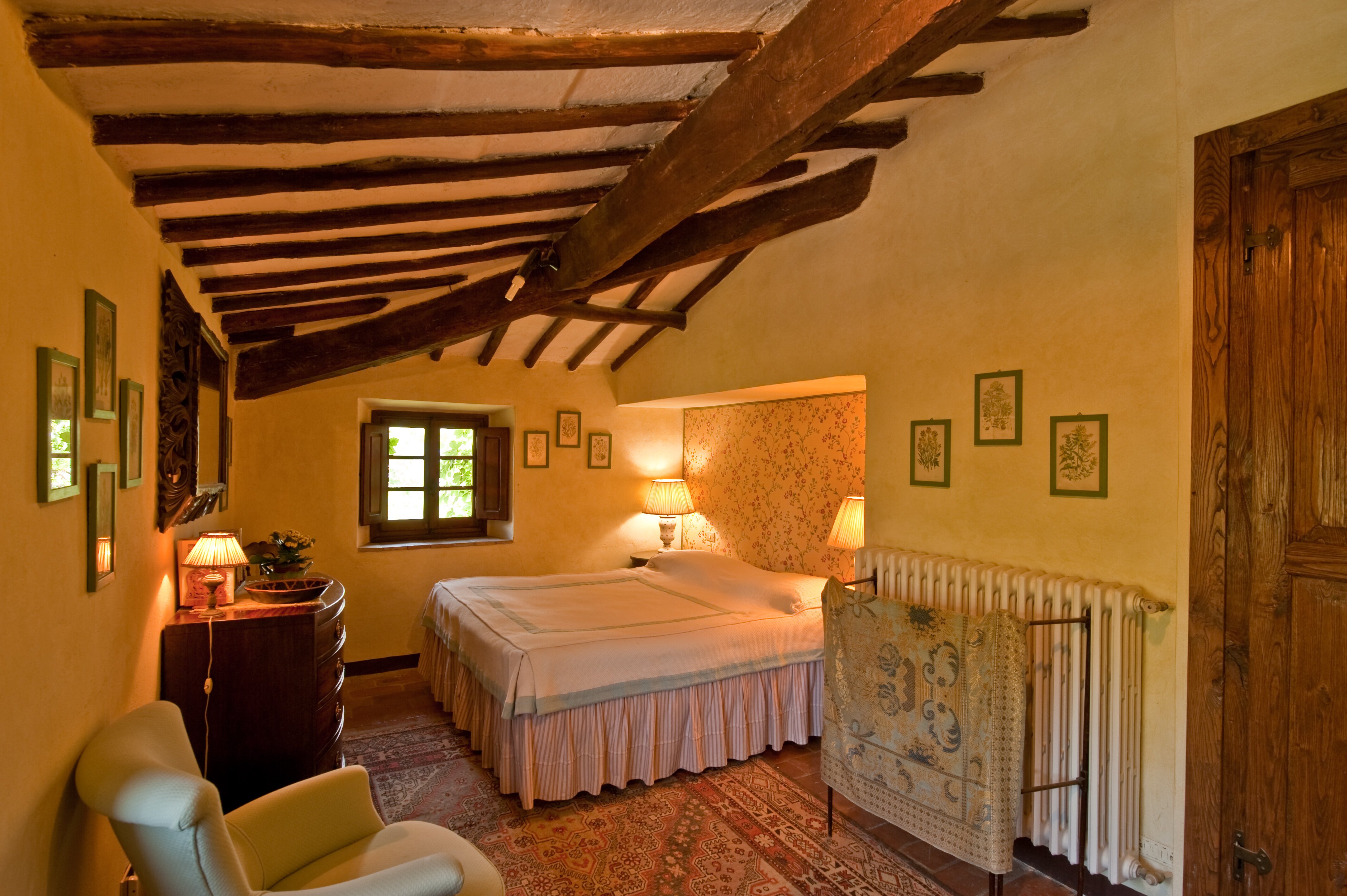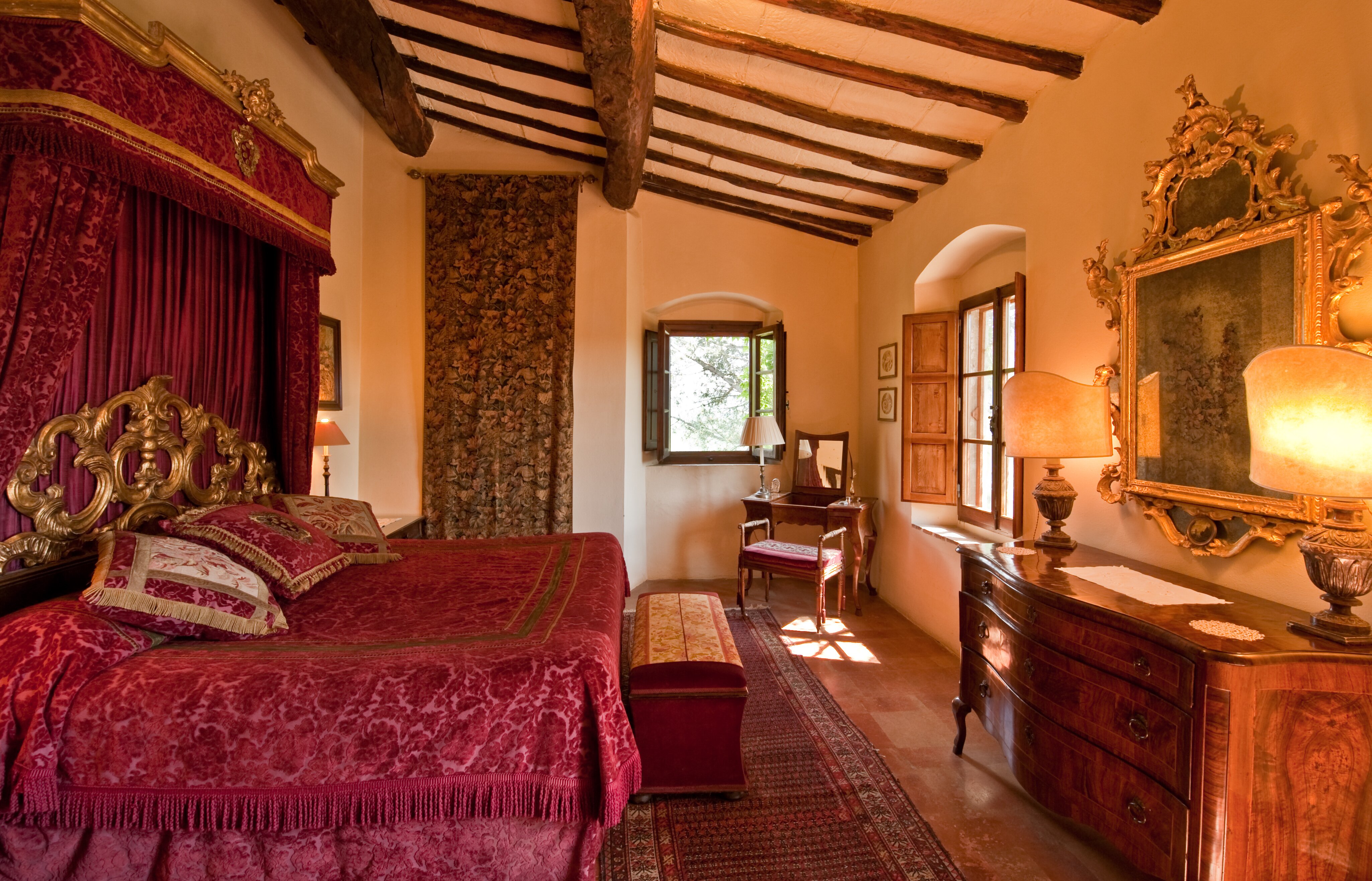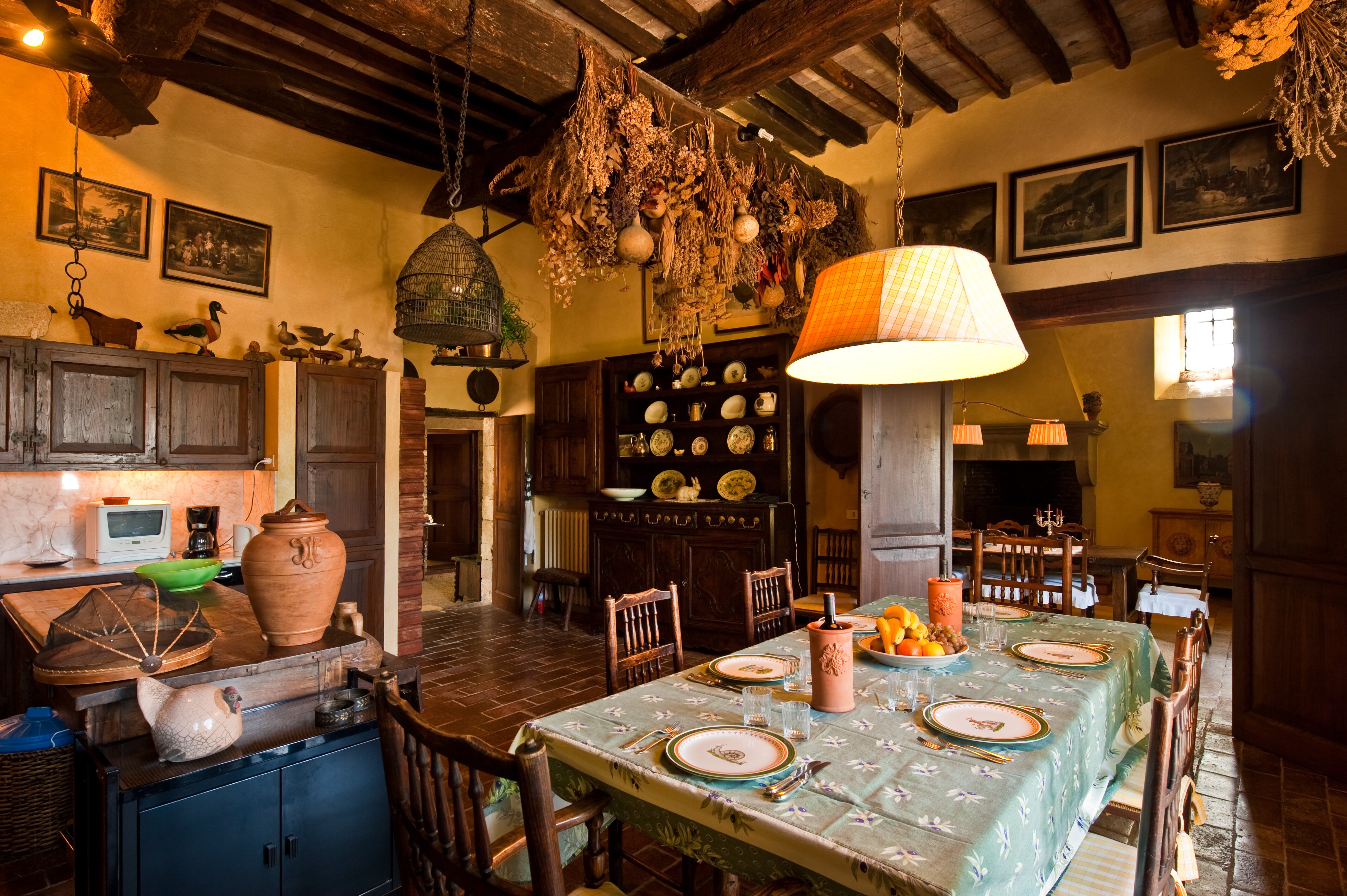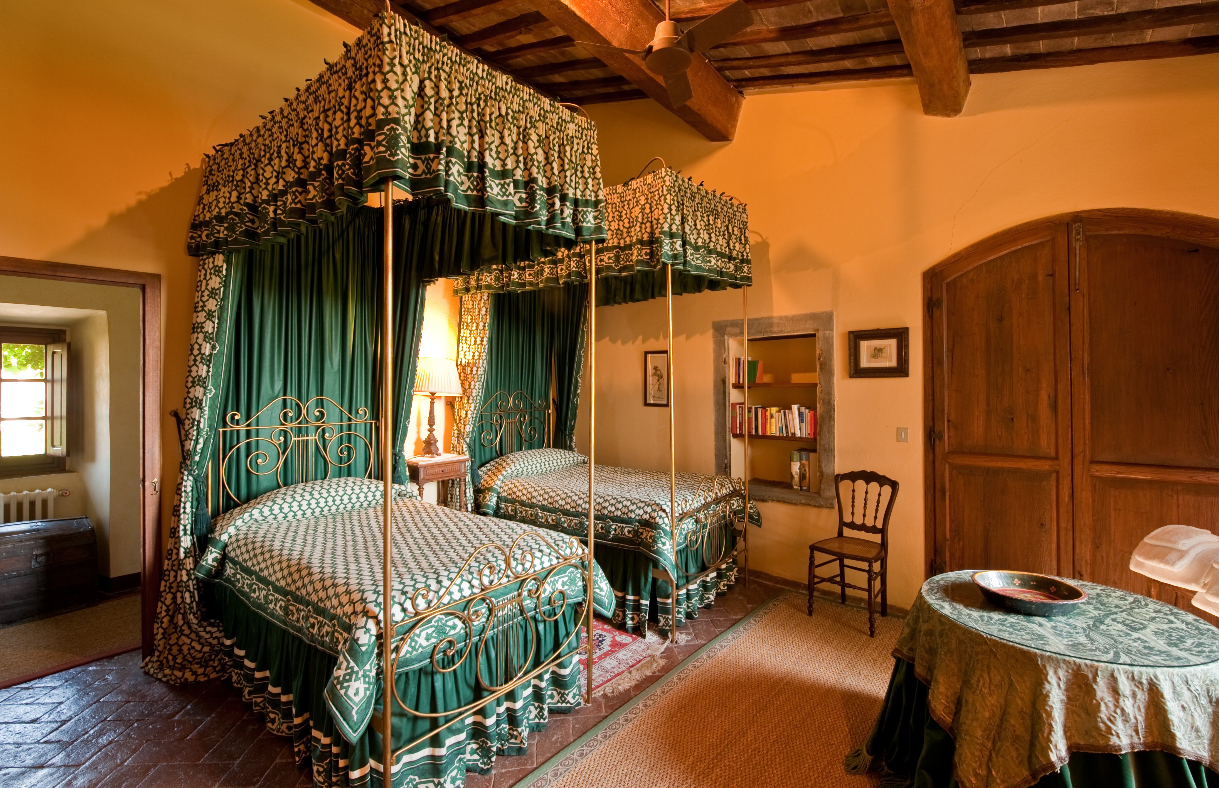 Resident staff, cook service, huge rooms and formal rose gardens all contribute to the sense of grandeur at this historic country house. And yet the villa exudes an irresistible air of welcome, an easy tempo of relaxation, and a comfortable combination of old world charm and contemporary facilities. Almost equidistant between Florence and Siena, Montefiori stands amid five acres of vineyards and olive groves, its gardens encompassing a bocce (petanque) ground, astroturf tennis court, and the swimming pool, backed by a bank of herbs and overlooked by a tree-shaded sitting area. Beside the house, a covered terrace is furnished for al fresco dining, looking out to tranquil views and leading into the effortlessly elegant sitting room, enchanting country style dining room, and ancient vaulted billiard room. Rich fabrics, four-posters and canopied headboards feature in the six first floor bedrooms, the master suite complete with dressing room and balcony. And the house is a stroll away from a local restaurant, 8km from shops and eateries in Greve, and 35km from the medieval streets of Siena.