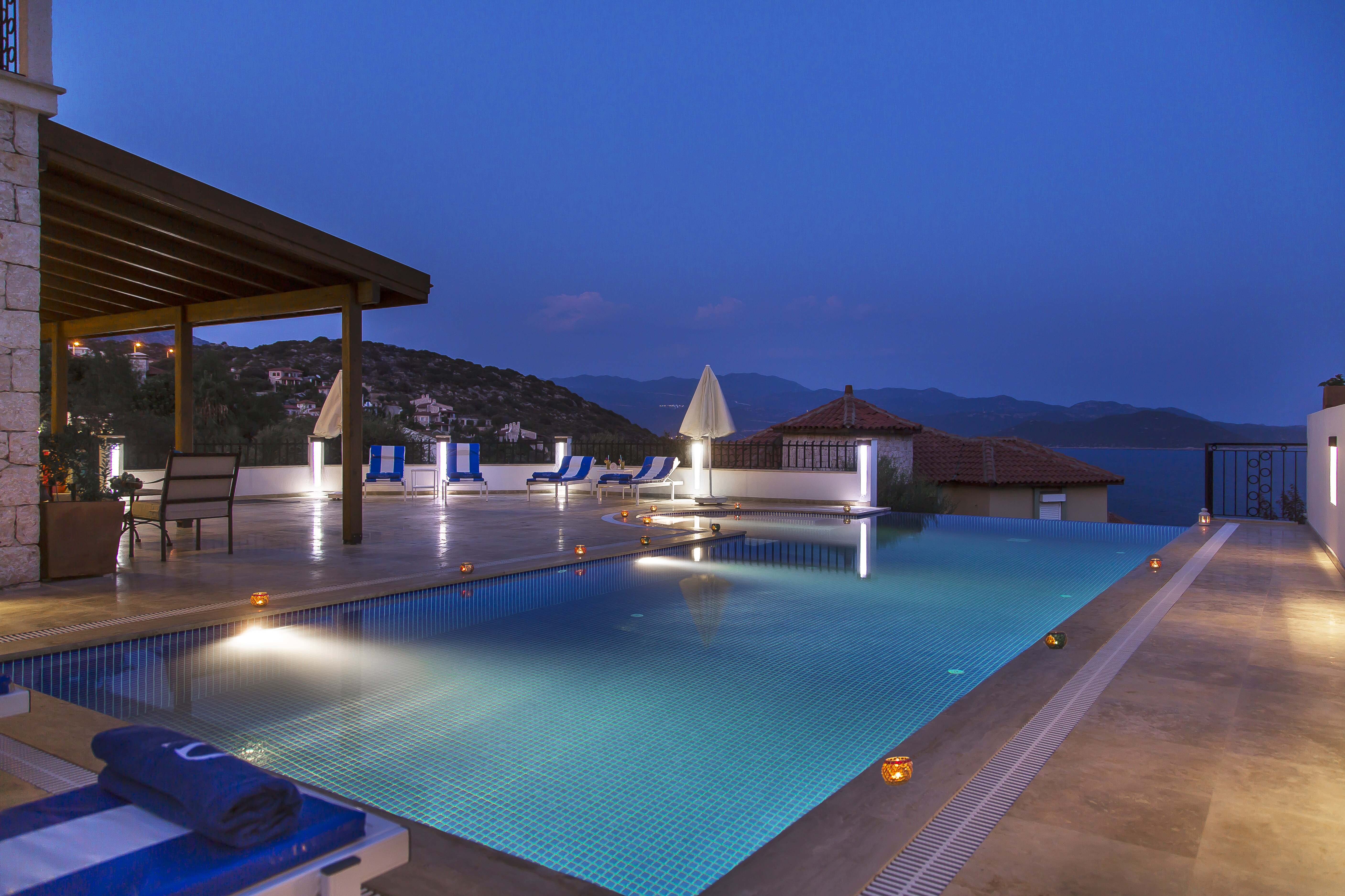 A contemporary house, but not without character, this family villa is set on seafront slopes near the lovely, laid-back town of Kas. On the ground floor, an open-plan room is stylishly furnished in soft earthy tones, with a beamed ceiling and exposed stone wall framing the kitchen, sitting and dining areas, with doors to a covered veranda for al fresco barbecue lunches. An en suite bedroom shares this floor, opening on to a lawned area by the pool; and there are three bedrooms on the upper level, one with a romantic (enclosed) Ottoman balcony, the master suite complete with en suite wet room and bath, and all with air conditioning and access to an open balcony with sea or garden views. Outside, a paved terrace surrounds the infinity pool, and a pathway leads down to a private sunbathing platform on the rocks, fitted with ladder steps into the sea. Set among similar residences on the Cukurbag peninsula, Portakal is 300m from a bathing platform, 500m from a pebble beach, and 4km from shops, cafés, restaurants, and the little harbour in Kas. There are sandy coves about 3km from the villa, and excellent dive sites just offshore.