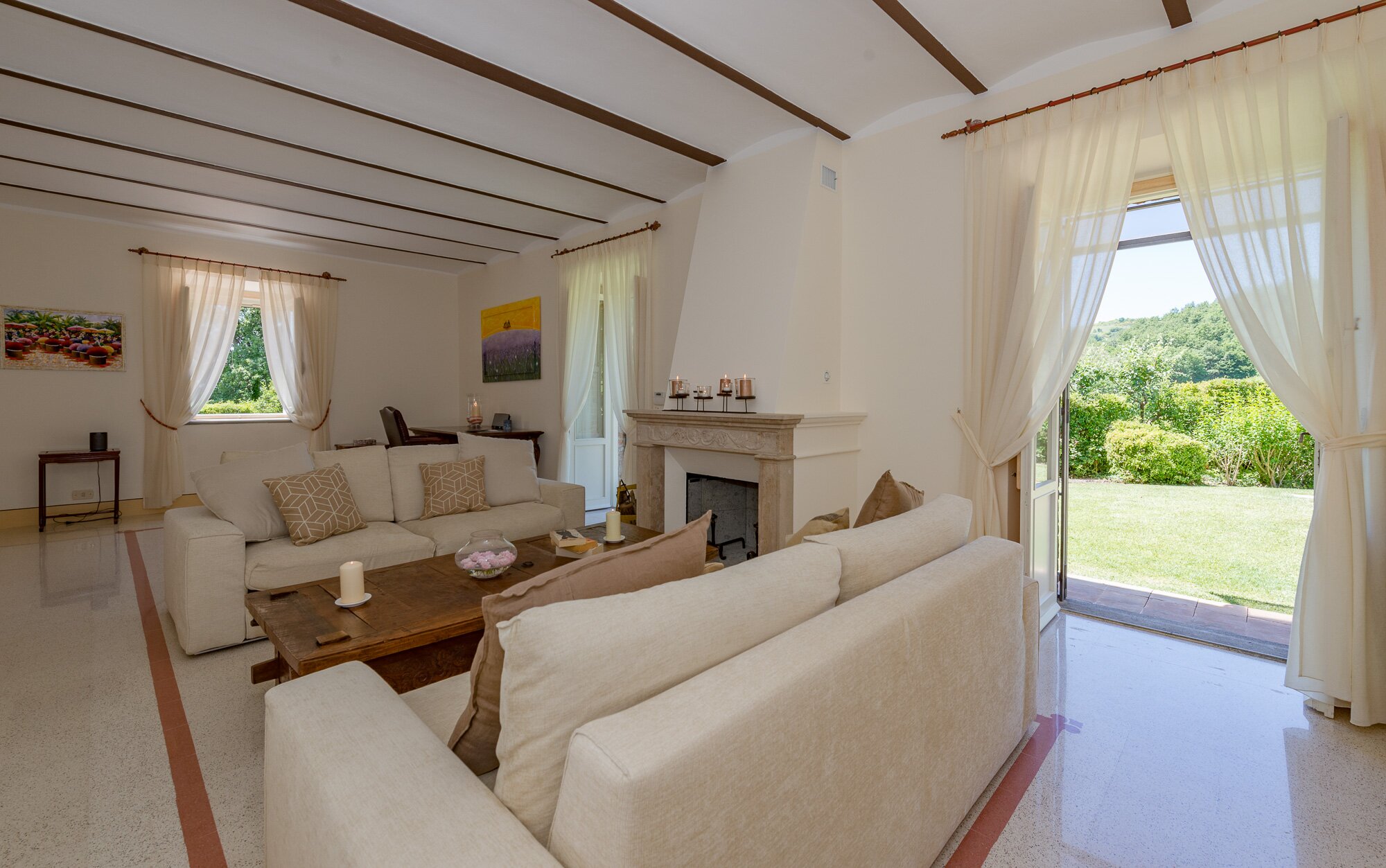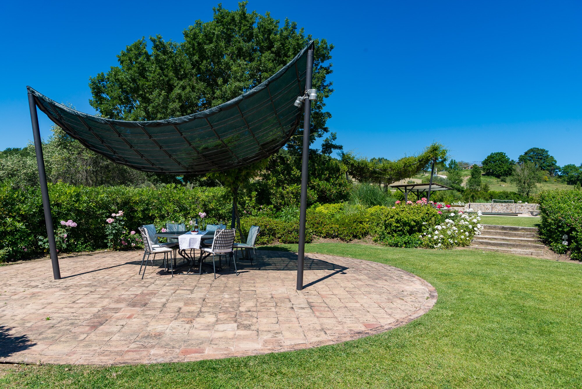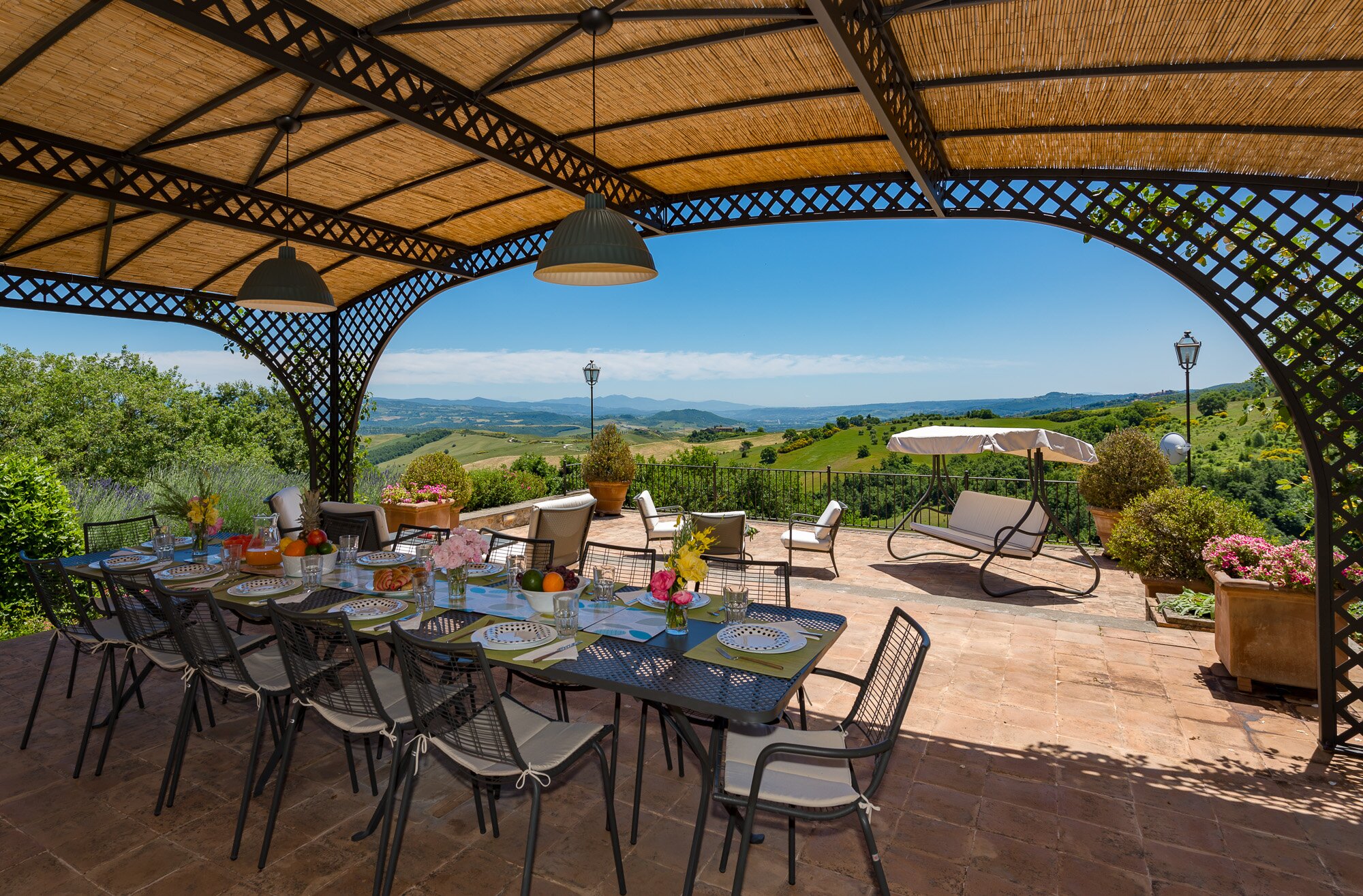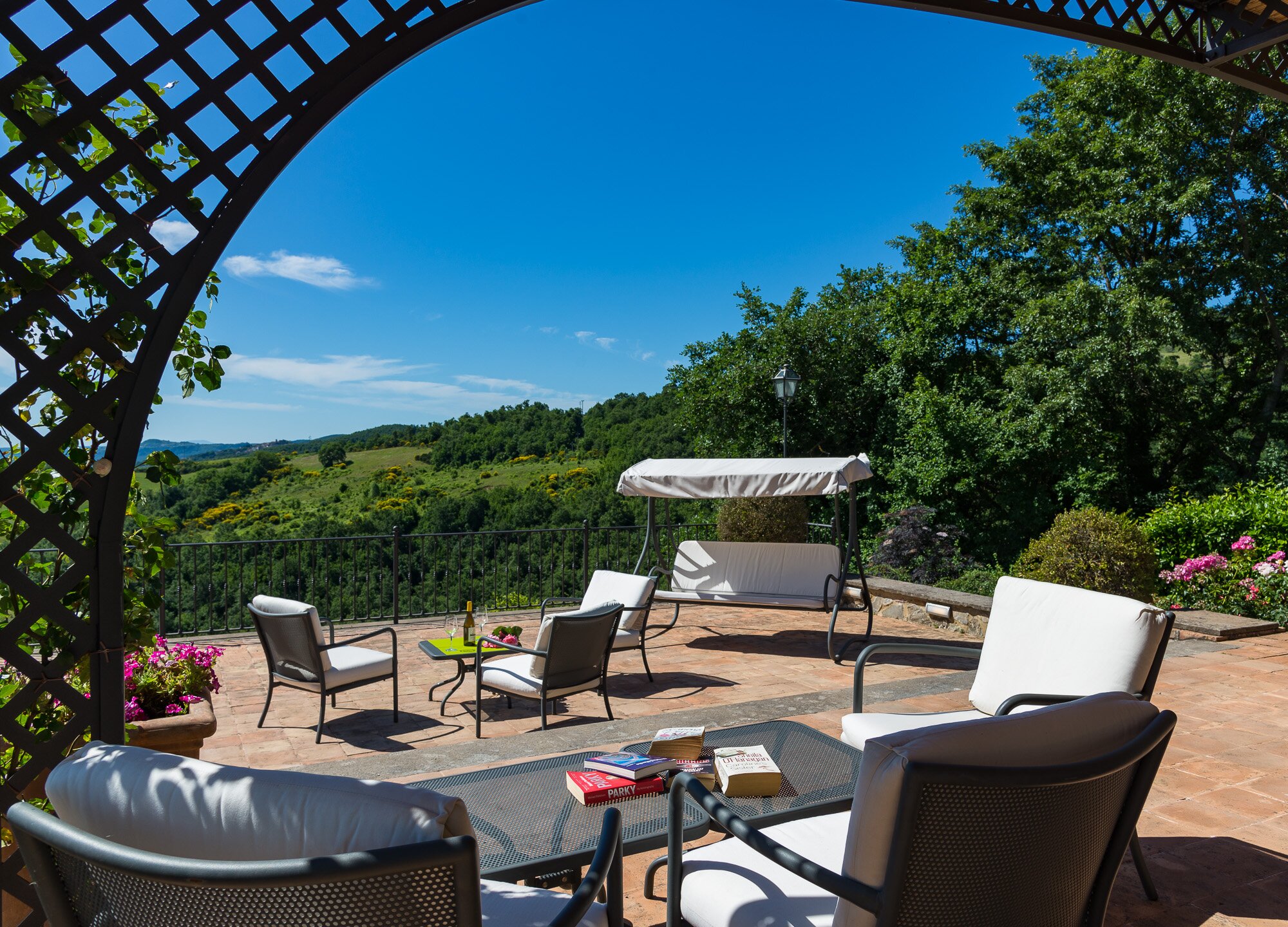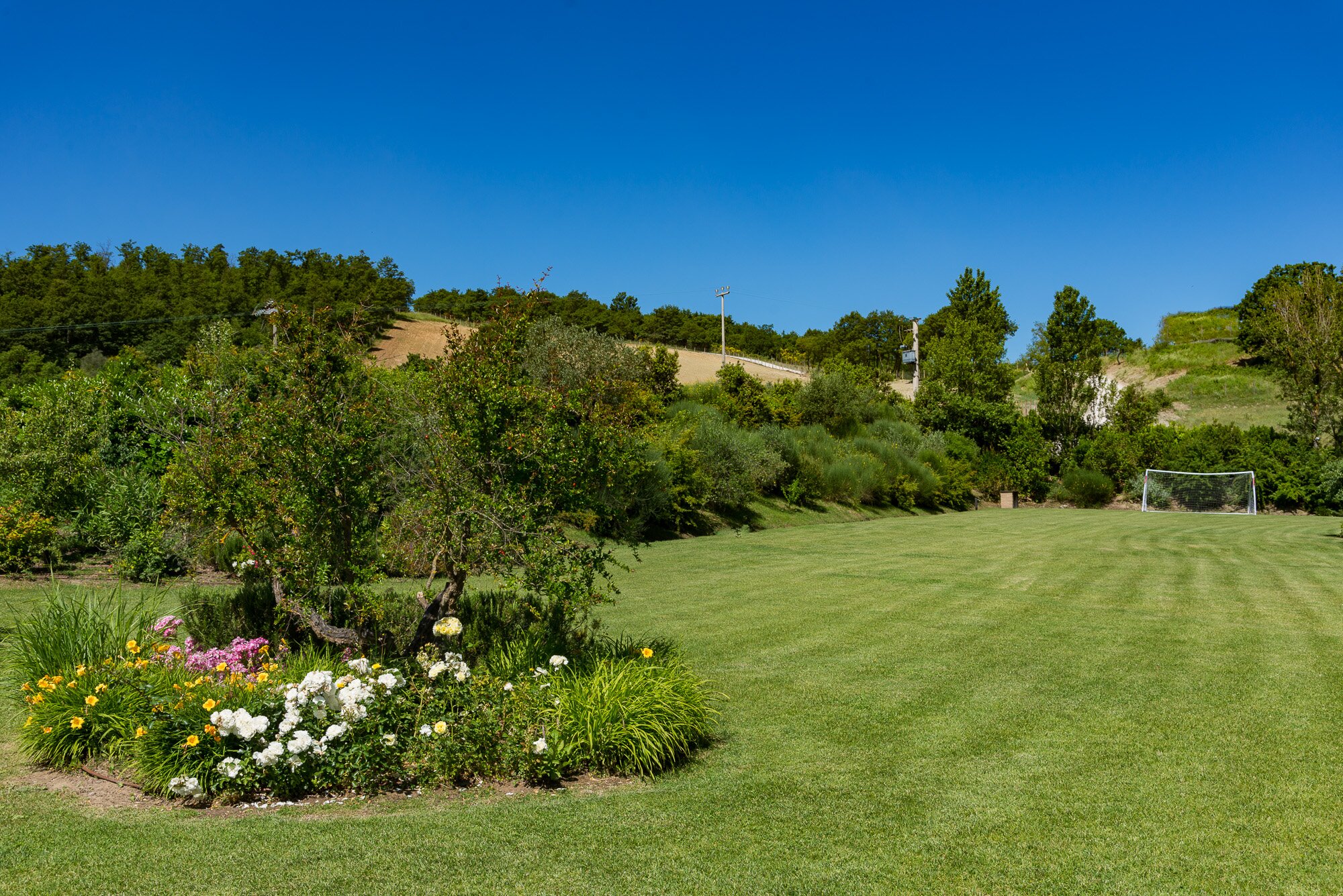 With magnificent far reaching views with Orvieto clearly visible in the distance, this spacious luxury villa with contemporary interiors is set in magnificent lawned gardens with a football goal. The layout is ideal for two families travelling together.